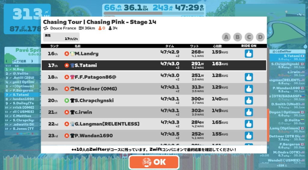 でも何人かからDMで先頭頑張ったねって英語やらスペイン語?で飛んできたので嬉しかったです。