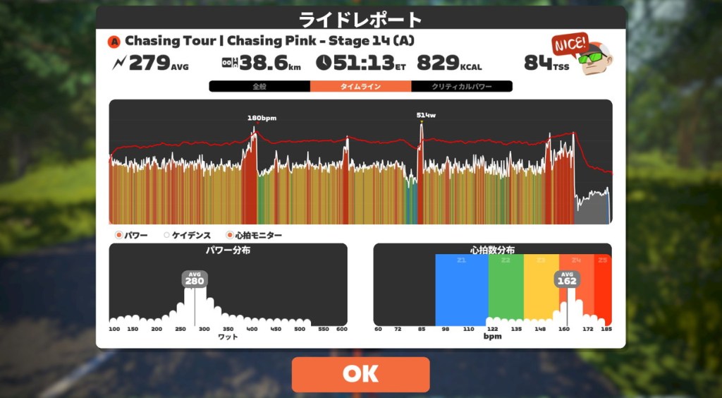 悔しいけど平均パワーは5.2倍だったので満足しました。